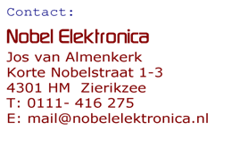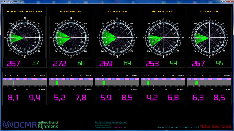Nobel Elektronica is een klein bedrijf wat zich sinds 1998 toelegt op instrumentatie. In het begin voornamelijk op het gebied van hydrologie en meteorologie. Ontwikkeling Hardware Software Het werkgebied omvat thans het ontwikkelen van specialistische hard- en software, het bouwen van prototypes en kleine productie aantallen. Modificatie Renovatie Reparatie Ook voor het ontwikkelen en aanbrengen van modificaties aan bestaande apparatuur kunt u bij Nobel Elektronica terecht, evenals voor renovatie of reparatie van zeer waardevolle onvervangbare apparatuur. Op de volgende pagina’s vindt u wat meer informatie over diverse projecten die in het verleden zijn uitgevoerd. Nobelnieuws Onderaan deze pagina ziet u het nieuwe Meteo Display zoals dit is ontwikkeld voor de meldkamer van DCMR Milieudienst Rijnmond. Het display maakt gebruik van meetgegevens uit de meetnetten van Havenbedrijf Rotterdam en Rijkswaterstaat. |